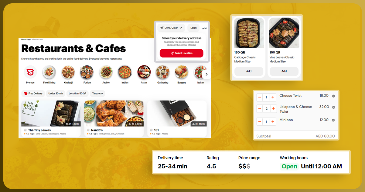 6. Snoonu - Fastest Delivery: Snoonu is a prominent delivery service in Qatar known for its quick and efficient delivery. As one of the fastest delivery options available in the country, Snoonu offers a wide range of services, including food delivery, grocery delivery, pharmacy delivery, and more. Customers can easily place their orders through the Snoonu mobile app or website. The platform boasts a user-friendly interface, allowing users to quickly select their desired items and enter their delivery address. Scrape Snoonu food delivery data to understand your competitors.