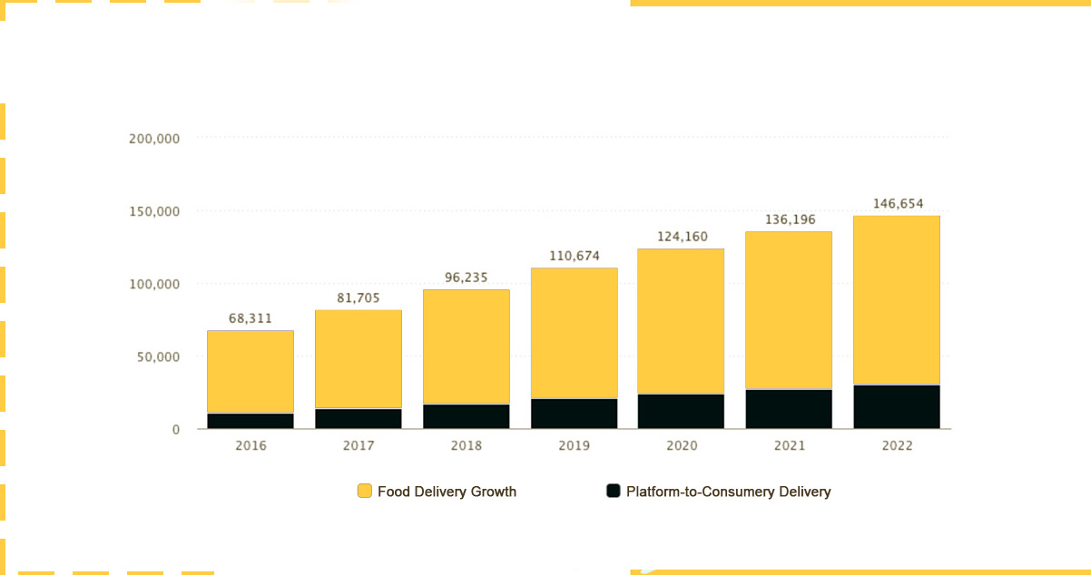 Revenue of the food delivery segment has reached US$9,207m in 2020! This income is expected to get an annual growth of 9.5% with CAGR 2020-2024 and reach US$13,233m of market size by 2024! The most significant segment in the marketplace is Restaurant-to-Consumer Delivery, with a volume of US$4,934m during 2020.