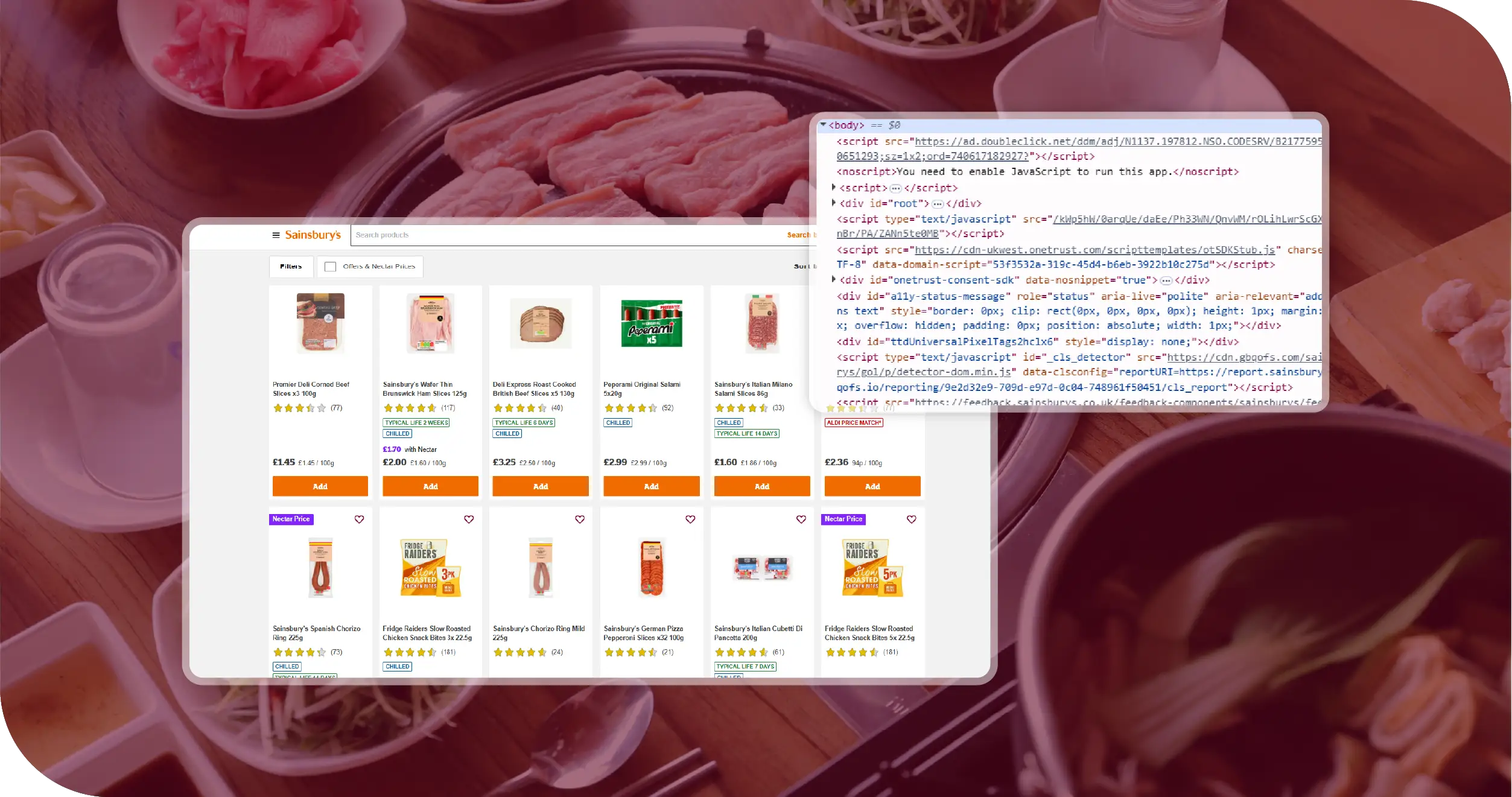 To achieve this, they required a system to Extract meat categories data from Sainsbury's, including detailed attributes such as product type (beef, lamb, chicken), packaging sizes, dietary labels (halal, organic), and shelf life information. In addition, they needed to Scrape meat prices from Sainsbury's consistently to monitor fluctuations and promotions. This data would support their consulting clients in making informed sourcing, stocking, and promotional decisions in a fast-evolving grocery market.