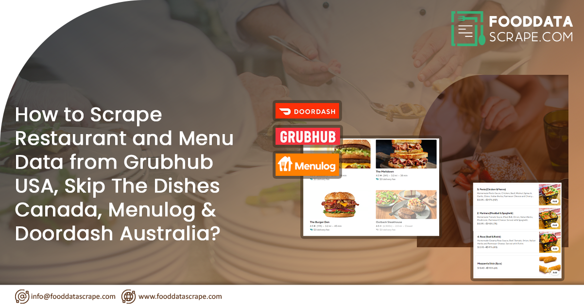 In the culinary industry, restaurant and menu data collection has become increasingly significant, reflecting evolving consumer preferences and industry trends. This practice involves gathering comprehensive information about restaurants, including their locations, cuisines, ambiances, operational details, and detailed menu offerings. As dining preferences evolve and digitalization continues to permeate the restaurant landscape, the demand for robust data collection methods is rising. This trend reflects a growing emphasis on data-driven decision-making, enabling businesses to tailor offerings to meet customer demands, analyze market trends, and gain a competitive edge in the ever-evolving food service landscape. In this article, we will delve into the steps to scrape Restaurant and Menu Data from Grubhub USA, Skip The Dishes Canada, Menulog & Doordash Australia; we unveil its rising importance and explore the emerging trends shaping the culinary industry.