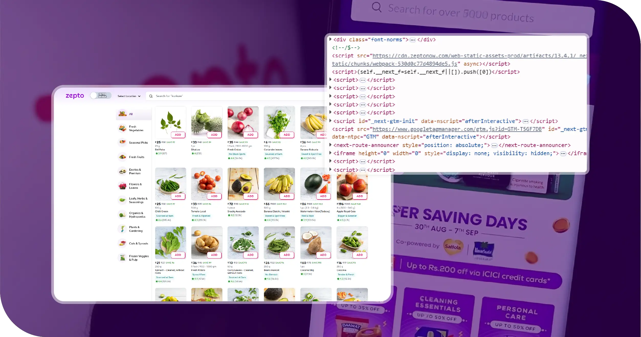 • Pin Code-Specific Data Extraction: Using our Grocery Delivery Scraping API Services, we captured grocery pricing and availability based on specific delivery zones to ensure hyperlocal accuracy.