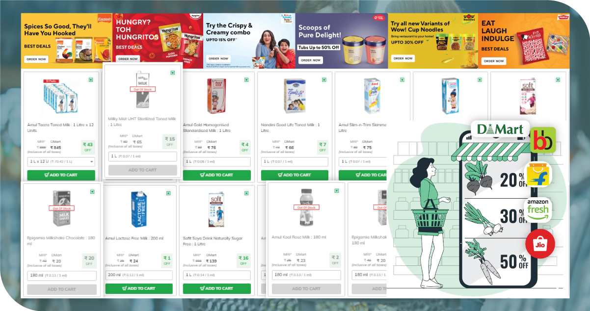 - Lack of Competitor Pricing and Discount Insights: The absence of an automated Dmart Grocery Data Scraping solution made it challenging for the client to monitor competitor pricing strategies and promotional offers. They faced difficulties analyzing discounts, special deals, and product variations, leading to missed opportunities to optimize their pricing model.