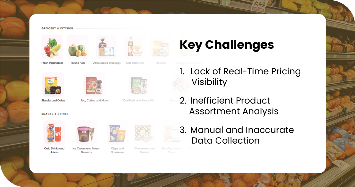 - Manual and Inaccurate Data Collection: Their previous Web Scraping Swiggy Instamart Supermarket Data process was manual and error-prone, leading to outdated insights and missed opportunities in the dynamic grocery delivery market.