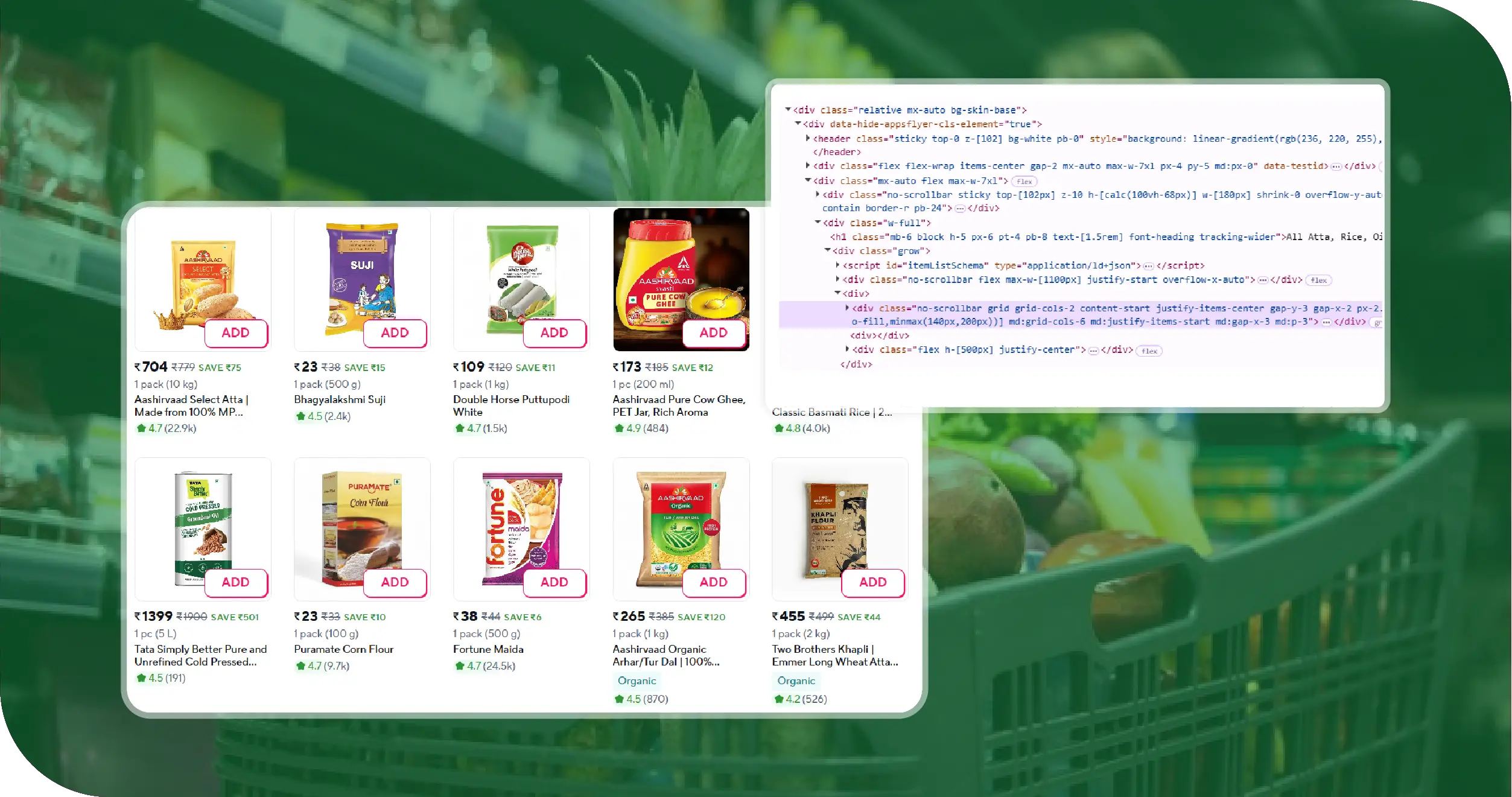 • Automated Crawling with Precision Filters: We deployed custom-built crawlers that focused on specific grocery categories, ensuring consistent extraction of product names, sizes, and weekly prices across both platforms.